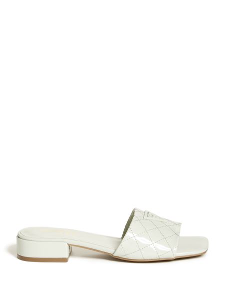 Cu Siguranță Vei Impresiona Cu Aceste Sandale Cu Tobog Cu Un Vamp Matlasat Cu O Emblemă De Logo Monocromatic, Un Vârf Pătrat Deschis și Un Toc Bloc Scurt.