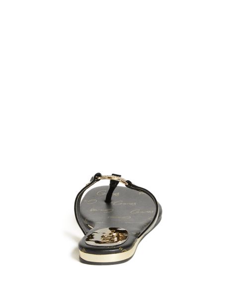 Pentru Distracție La Soare. Sandalele Au Un Tanga Din Piele Artificiala Lacuita Cu Un Logo Cu Strass Si Toc Cu Pana Joasa.