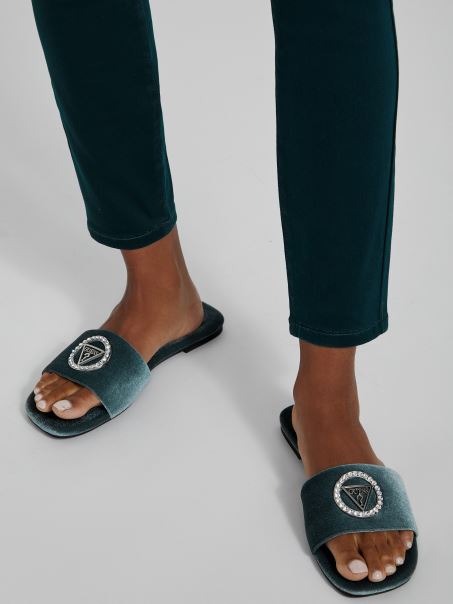 Catifea De Pluș Acopera Aceste Sandale Cu Glisiere înălțate, Cu Emblema Logo-ului Pavᄄᆭ Cu Stras și Vârful Pătrat Deschis.