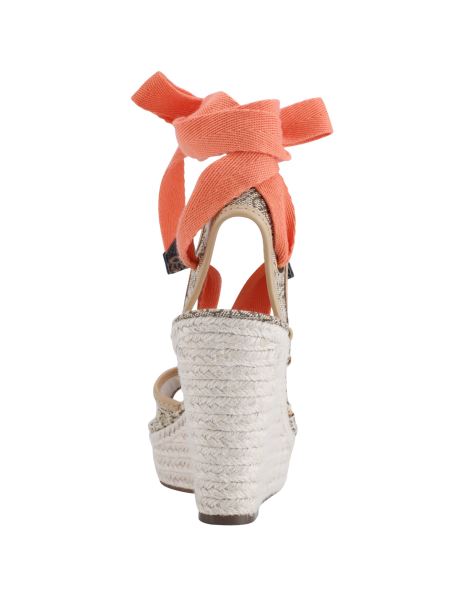 Sandale Cu Pane, Cu Un Design Cu Vârf închis, Cu Vamp Imprimat Cu Logo și Curea Pentru Călcâi. Finisat Cu Panglici Din Material Textil Pentru Inchiderea Cravata La Glezna Si O Platforma Din Paie Impletita.