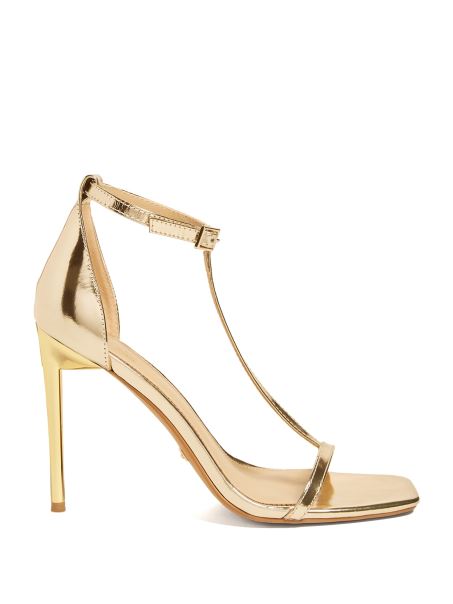 Sandale Guess Cu Toc Auriu Cu Curea în T
