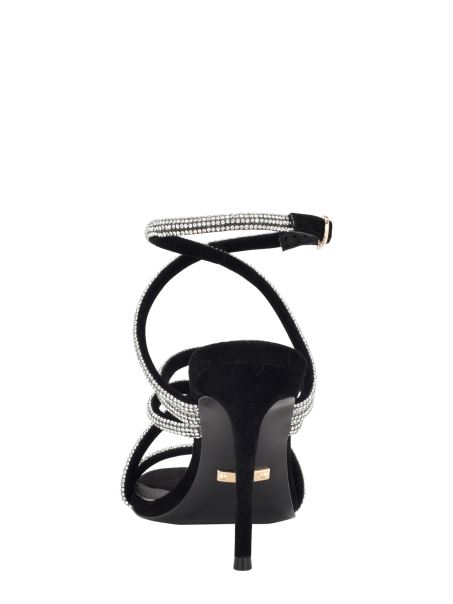 Gata Pentru O Noapte Plină De Farmec, Aceste Sandale Sunt Concepute Cu Mai Multe Bretele Subțiri încrustate Cu Strasuri, Fabricație Din Catifea și Tocuri Stiletto.