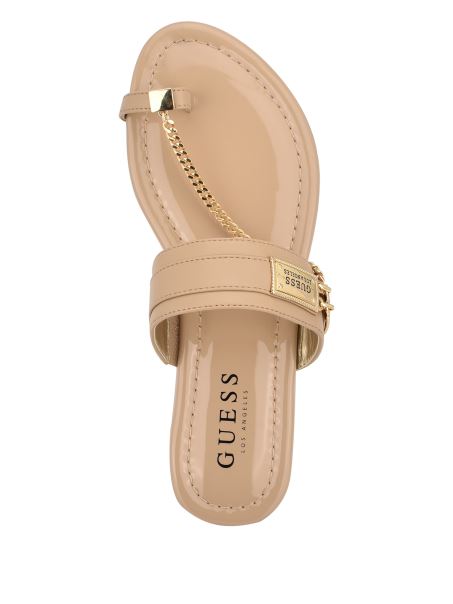 O Pereche De Sandale Plate înălțate, Cu Finisaj Din Piele Artificială și Un Detaliu De Curea De Lanț Cu Placă Cu Logo Email. Bucla Degete.