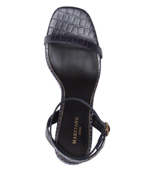 Sandală Cu Toc Guess Din Crocodil Albastru De Mătase