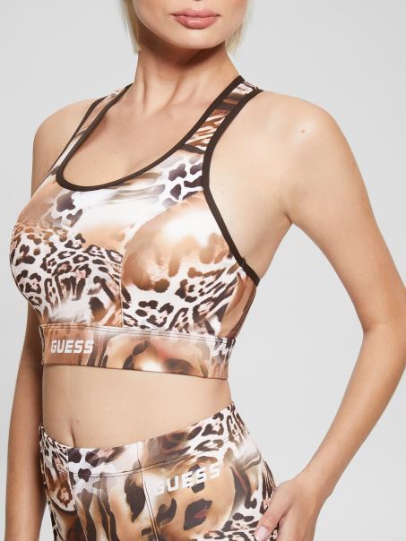 O Piesă îndrăzneață Care Va Amplifica Orice Antrenament. Acest Sutien Activ Din Microfibră Este Complet Cu Un Imprimeu Animal Mixt, Cusături Prințesă Strânse, Un Logo în Față, Decolteu Deschis, Spate Raser și Piping Contrastant. Contine Plastic Reciclat.