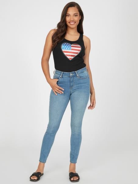 Tanc Casual Cu Decolteu Deschis, Realizat Din Fiber De Bumbac Organic, Cu O Inimă De Steag în Față.
