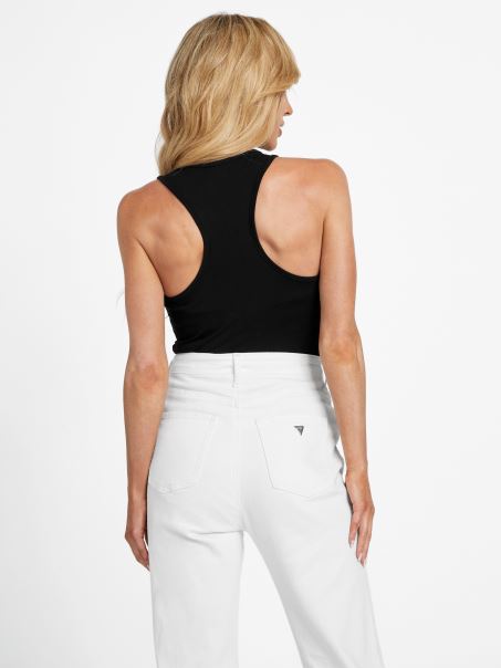 Arată-ți Latura Sportivă în Acest Tanc Cu Spate Cros Cu Decolteu Deschis și Design Cu Dungi Cu Logo Cu Strass în Față. Conține Fibre De Bumbac Organic.