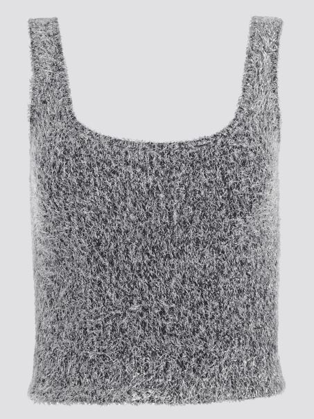 Confortabil, Drăguț și Amestec De Cașmir. Acest Maieu Din Amestec De Lână Are Un Exterior Strălucitor, Decolteu Pătrat și Croială Fără Mâneci.