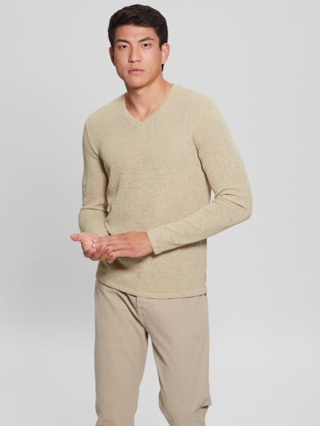Guess Cu Mânecă Lungă Tifon Tee Cemento