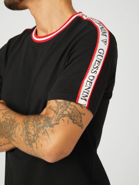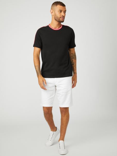 Completează-ți Aspectul Cu Acest Tricou Relaxat, Cu Un Gât Cu Dungi De Varsity și Cu Bandă Cu Logo Pe Mânecile Scurte.