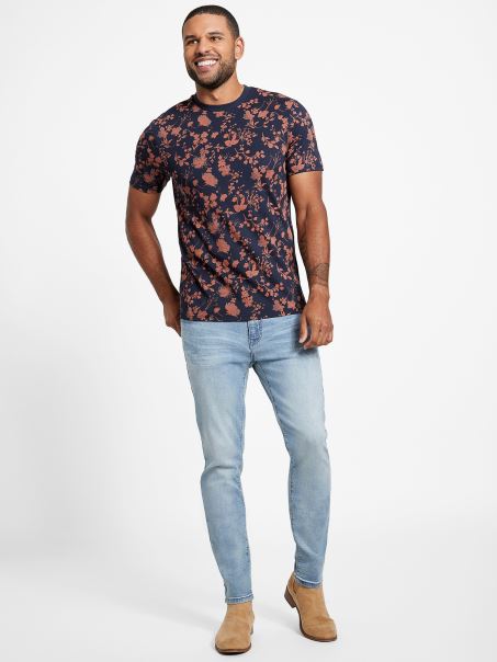 Un Imprimeu Floral Peste Tot Adaugă O Notă Vibrantă Acestui Tricou Din Jerseu, Cu Mâneci Scurte și Decolteu în Picioare.