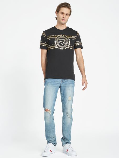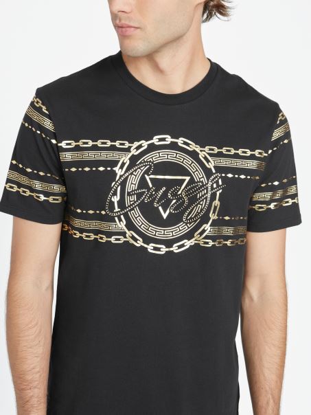 Elementele Grafice îndrăznețe Cu Lanț Metalic Amplifică Acest Tricou Din Jerseu, Cu Un Logo Cu Semnătură Cu Strasuri, Decolteu și Mâneci Scurte.