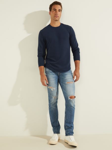 Guess Tricou Cu Mânecă Lungă Din Jerseu Texturat Albastru De Mătase
