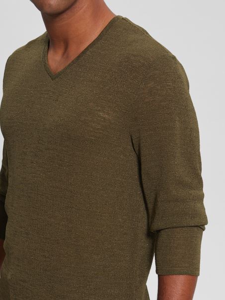 Guess Tricou Din Tifon Cu Mânecă Lungă Olive Morning