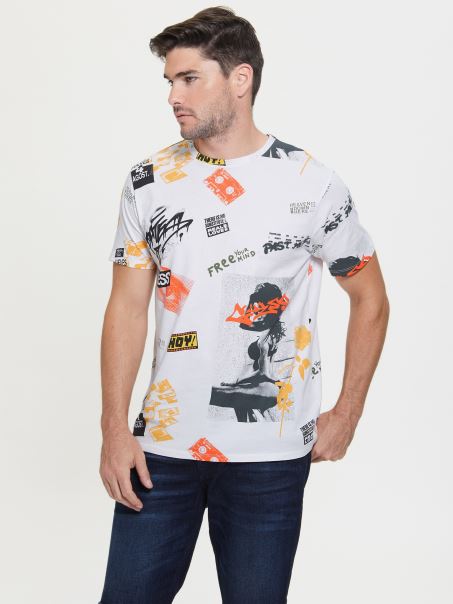 Guess Urban City Collage Tricou Alb Pur Multi
