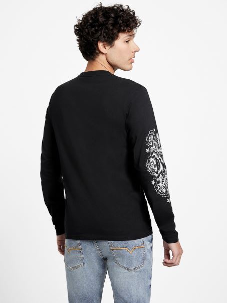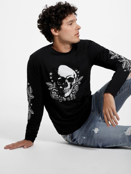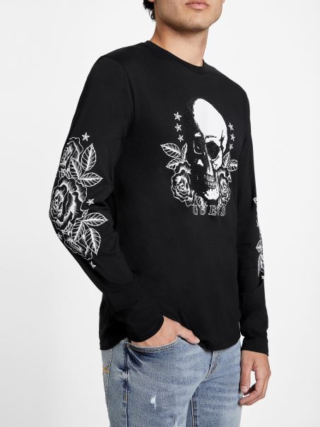 Completează-ți Aspectul Emotionant Cu Acest Tricou Cu Mânecă Lungă, Cu O Grafică A Craniului în Față, Logo, Decolteu și Mâneci Lungi Cu O Grafică Florală.