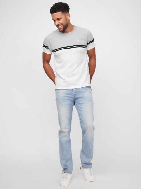 Un Element Esențial Casual, Acest Tricou Cu Mânecă Scurtă Are Un Design Color-block, Detalii Cu Dungi și Un Logo Triunghi Brodat. Complet Cu Un Gât Crestat.