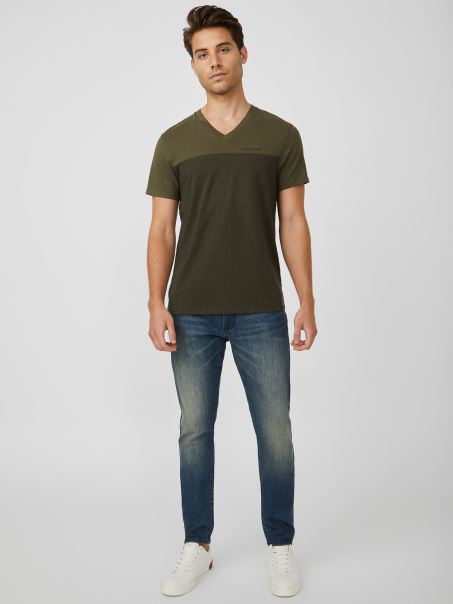 Tricou Cu Decolteu în V Guess Olive Morning Ganton