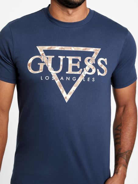 Tricou Cu Logo Eco Rinker Guess Albastru Mătase