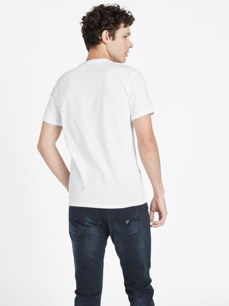 Tricou Cu Logo Reflectorizant Alb Pur Jasso Cu Decolteu Guess