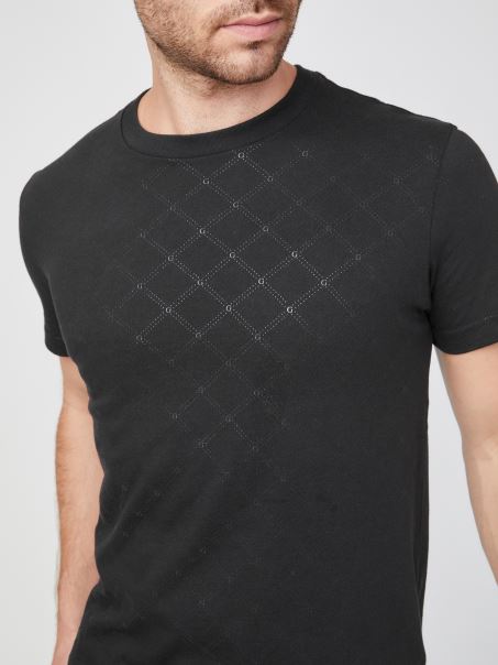 Ideal Pentru Weekend, Acest Tricou Cu Mânecă Scurtă și Decolteu Are Un Model Subtil De Diamant Metalic Cu Detalii G La Conexiuni.