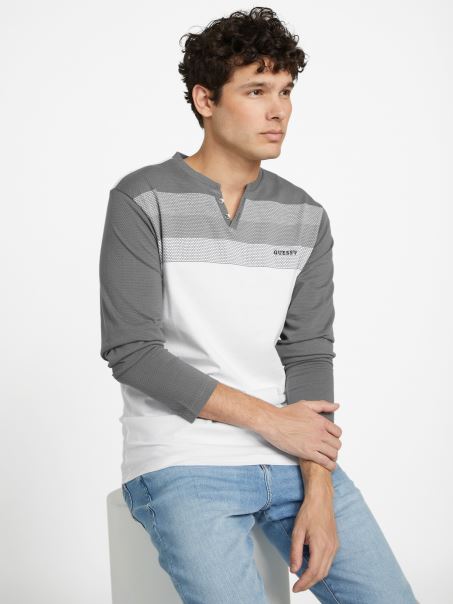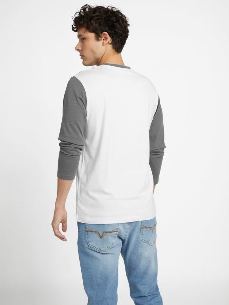 Tricou Cu Mânecă Lungă Color-block Multi Lennox Alb Pur Guess