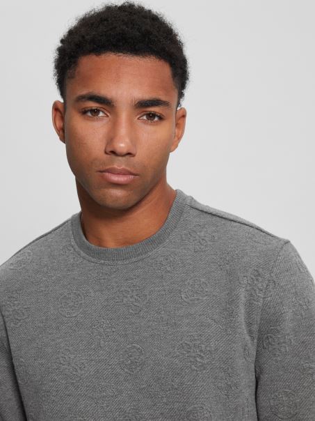 Tricou Cu Mânecă Lungă Guess Bujor Jacquard Gri Eco Logo Jacquard Guess