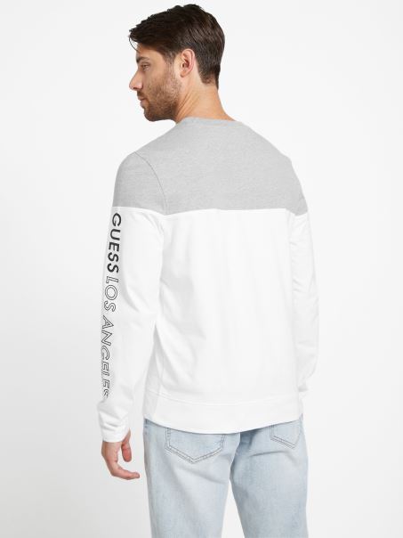 Tricou Cu Mânecă Lungă Guess Eco Zioin Color-block Alb Pur