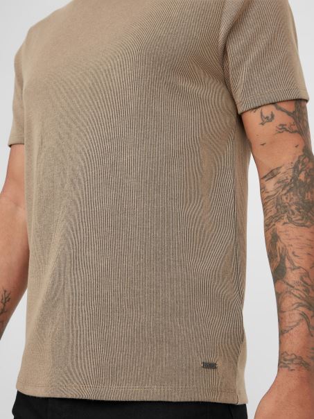Tricou Cu Nervuri Guess Taupe Prăjite