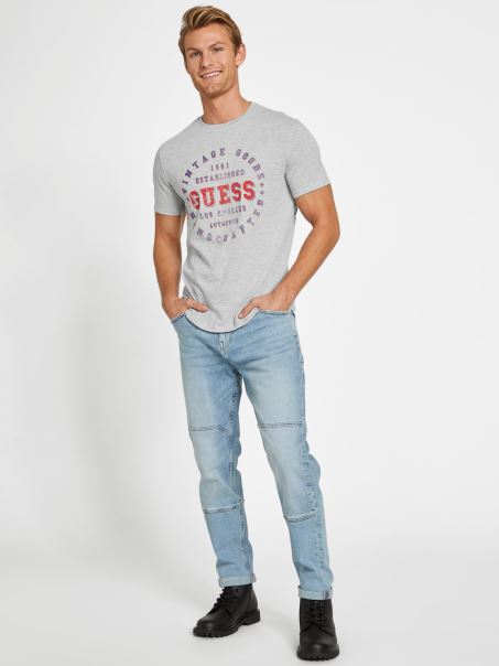 Tricou Eco Varsity Crewneck Gri Heather Deschis Guess