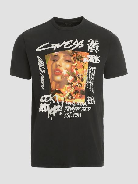 Stilul Tău De Stradă Tocmai S-a îmbunătățit Cu Acest Tricou Din Jerseu. Proiectat Cu O Grafică și Logo Mixt, Decolteu și Mâneci Scurte.