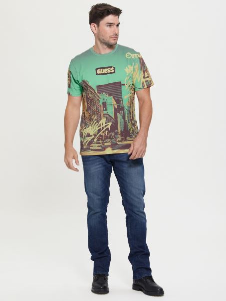 Intră Pe Străzile Din Centrul Orașului Cu Acest Tricou Din Tricou Cu O Grafică Dtla Cu O Neclaritate Artistică, Modele Graffiti, Decolteu Cu Mâneci Scurte și Mâneci Scurte. Fibre De Bumbac Organic.