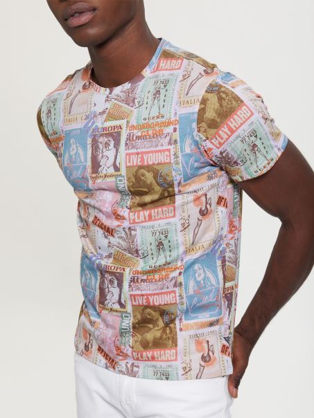 Tricou Guess Alb Pur Multi Eco Global Carte Poștală