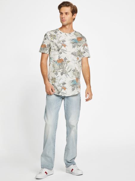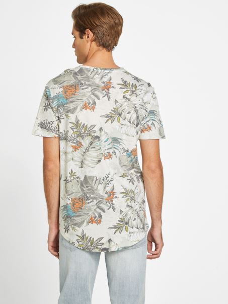 Tricou Guess Alb Pur Multi Morrie Cu Gât Crew