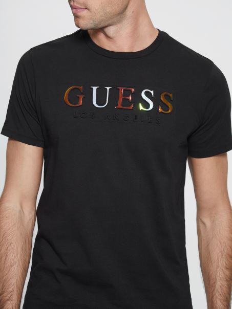 Tricou Guess Cu Logo în Relief, Negru Jet