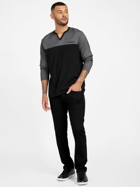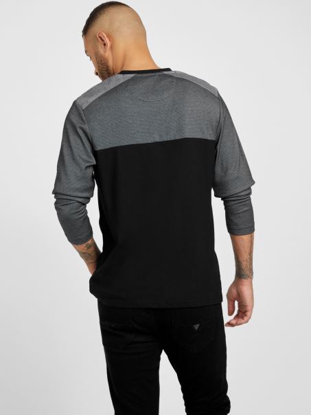 Tricou Guess Harman Cu Decolteu în V Cu Mânecă Lungă, Negru Jet