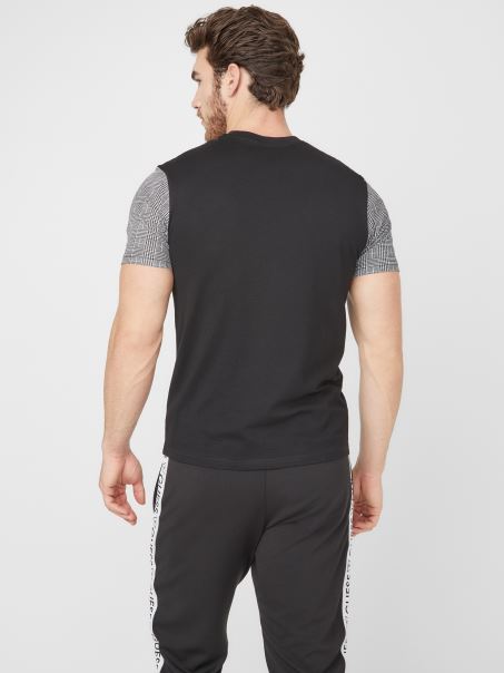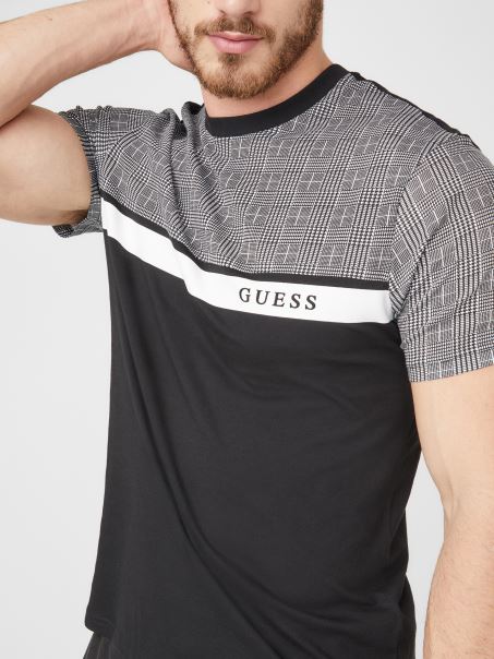 Un Element Esențial Pentru Acum și Mai Târziu, Acest Tricou Cu Gât Roșu Are Un Panou Imprimat în Carouri De-a Lungul Umerilor și Mânecilor Scurte și Un Corp Solid Cu Detaliu Cu Logo.