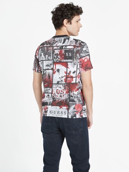 Pentru Locuitorii Orașului. Acest Tricou Grafic Are Un Imprimeu Colaj în Stil Graffiti, Logo și Mâneci Scurte. Confectionat Din Fibra De Bumbac.