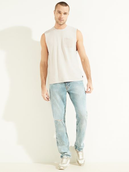 Pentru Acel Aspect Aspru, Relaxat. Acest Tricou Cu Gât Muscular Are Un Buzunar Din Plasă De Bumbac și Un Design Clasic Fără Mâneci. Realizate Cu Fibre De Cânepă și Bumbac.
