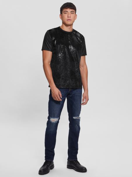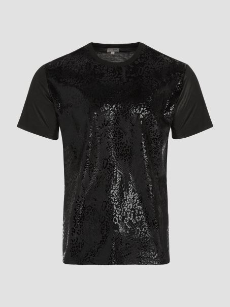 Adauga Putina Stralucire. Tricou Cu Gât Crew Cu Design Subtil Din Folie De șarpe în Față. Maneci Scurte.