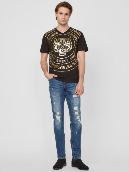 Faceți O Declarație în Acest Tricou îndrăzneț Cu Decolteu, Cu Un Grafic Tigru Cu Design Geometric în Față.