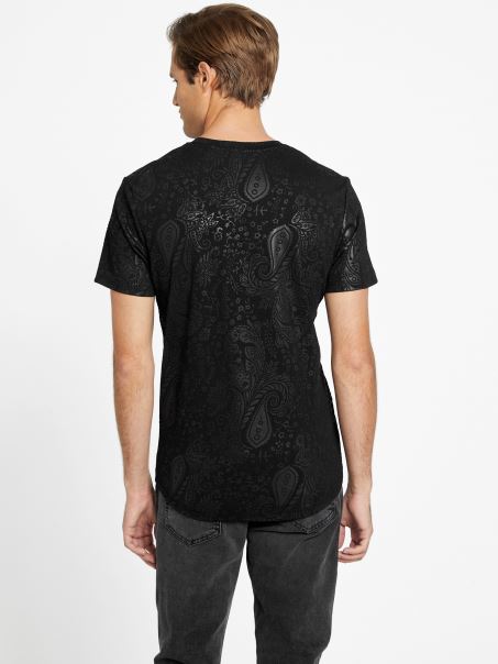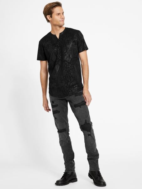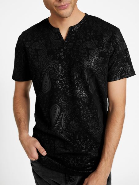 Ridică-ți Aspectul De Zi Cu Zi Cu Acest Tricou Cu Fante. Proiectat Cu Imprimeu Romano Jacquard, Decolteu Cu Fante și Mâneci Scurte.