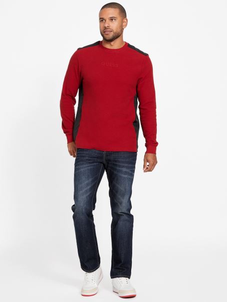 Tricou Roșu Noir Guess Nabry Color-block Cu Mânecă Lungă