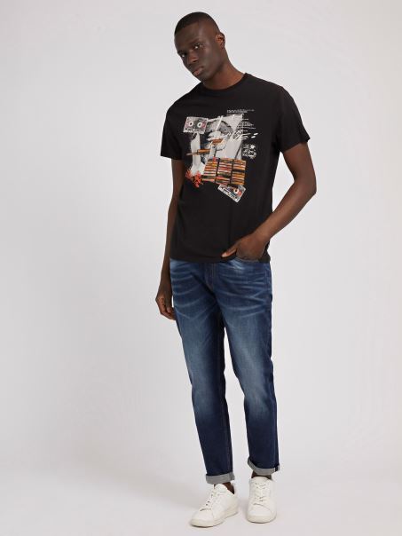Guess Tricou Cu Imprimeu Frontal Negru Multi