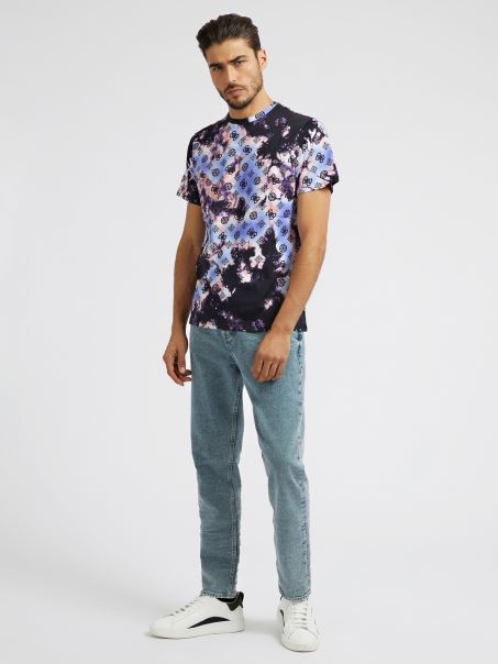 Guess Tricou Cu Logo Tie-dye Negru Multi
