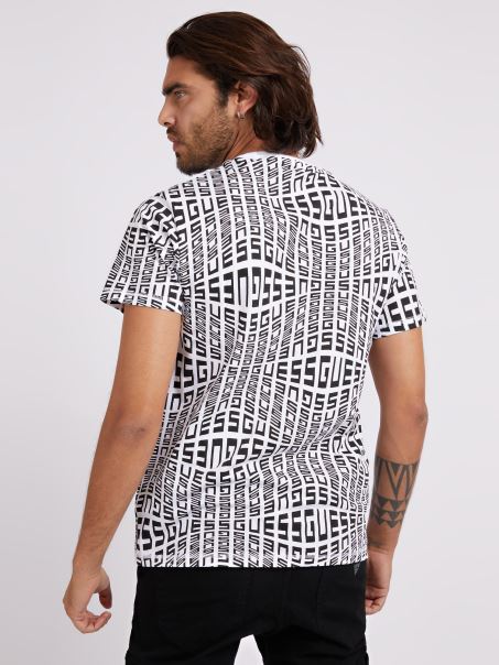 Tricou Cu Imprimeu Peste Tot Guess Alb Multi
