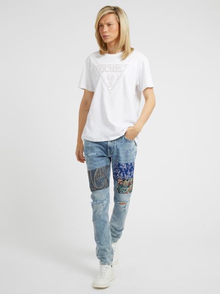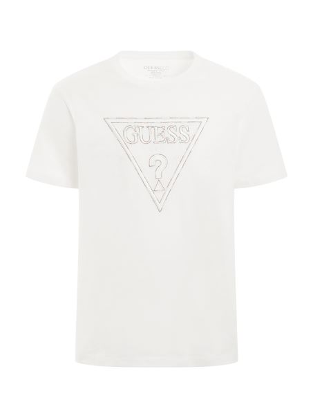 Tricou Guess Cu Logo Triunghi Brodat Alb