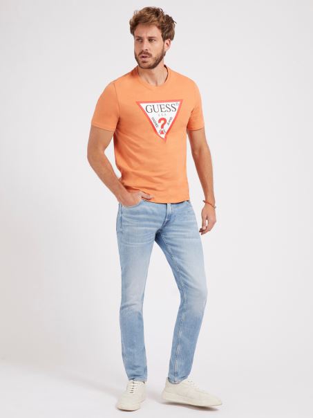 Tricou Portocaliu Cu Logo Guess Triangle