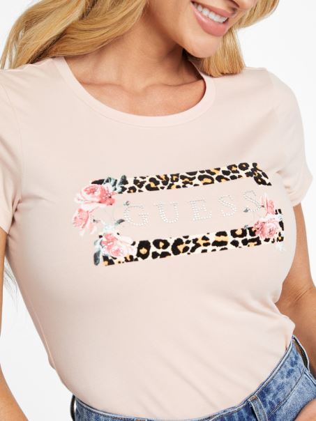 Extrem De Satisfăcător, Acest Tricou Din Jerseu Are Un Logo Cu Strasuri înconjurat De Un Leopard și Margine Florală, Decolteu Cu Mâneci Scurte. Fibre De Bumbac Organic.