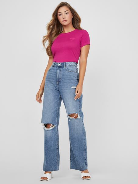 Perechea Perfectă Cu Blugii Tăi Emblematici. Acest Top Din Jerseu Are Un Logo Brodat Monocromatic, Decolteu și Mâneci Scurte.